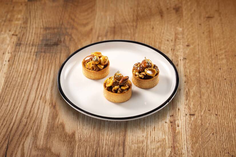 Хрустке пісочне тісто з ніжною карамеллю та сумішшю добірних горіхів: фундука, мигдалю і волоського. (1шт на порцію)