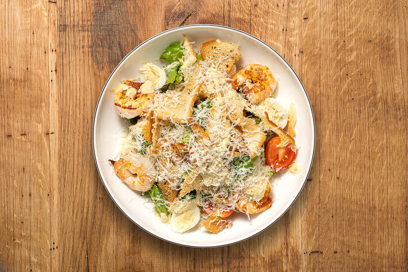 Салат цезар з грильованою індичкою та кранчами з бекону